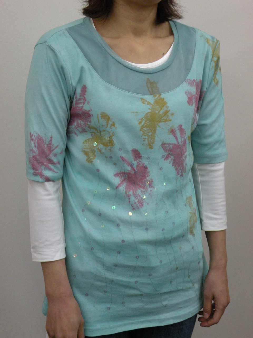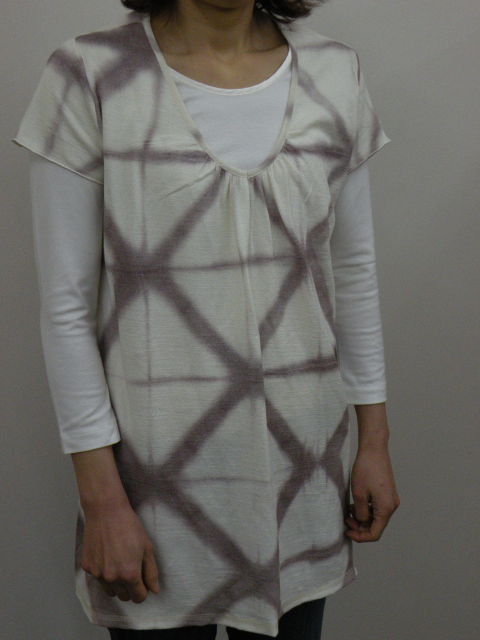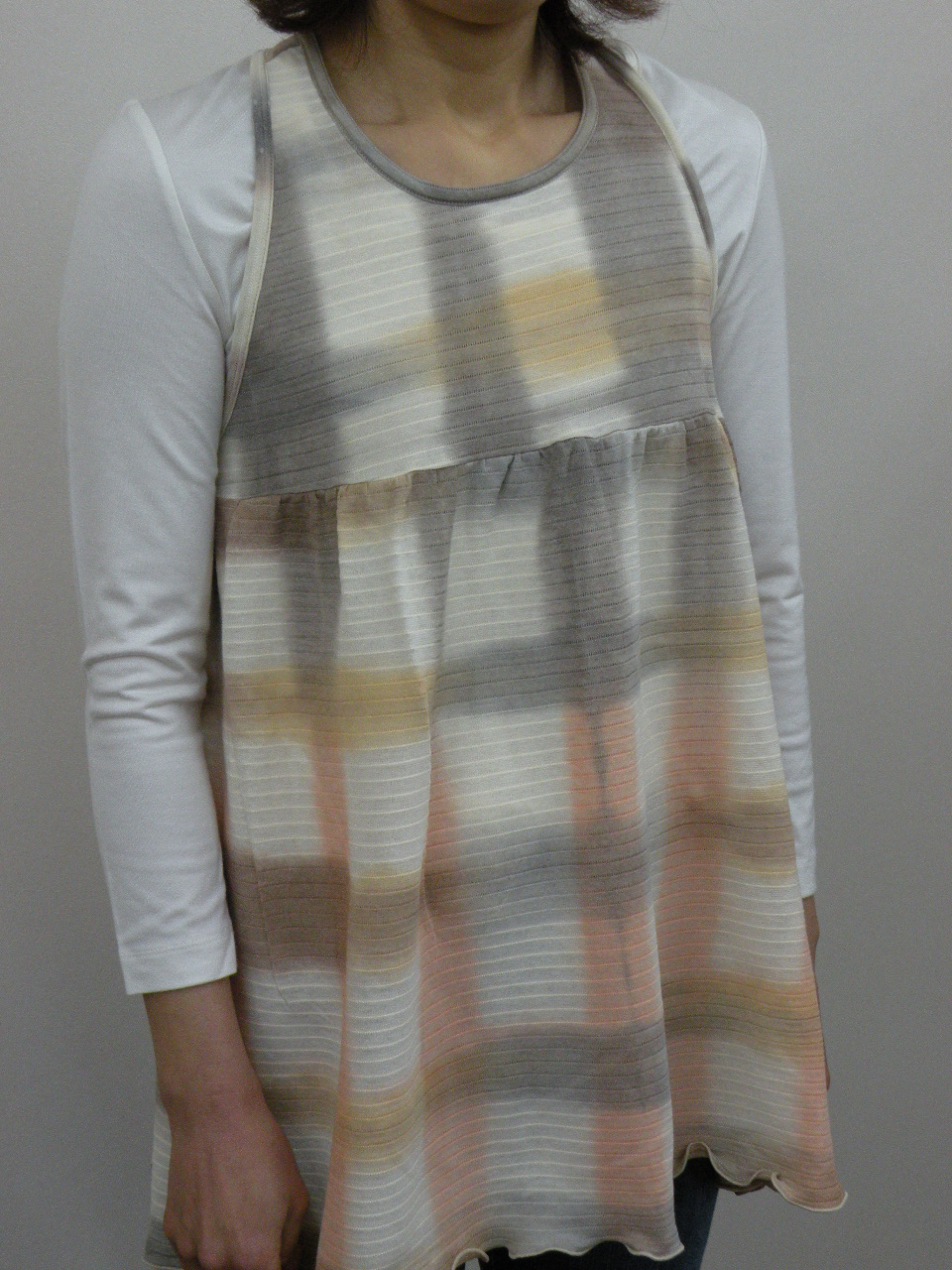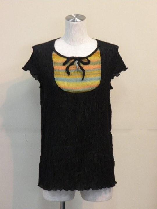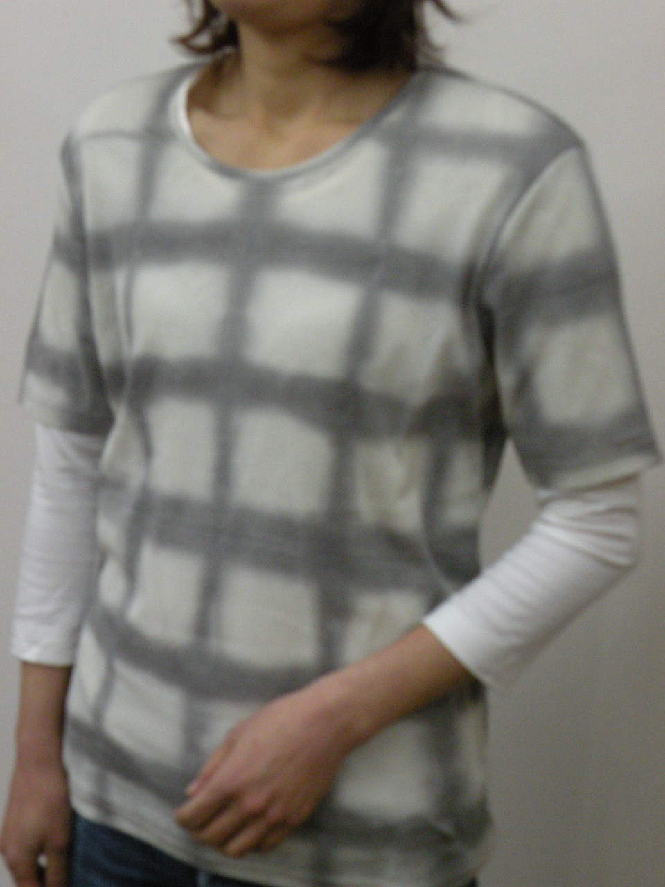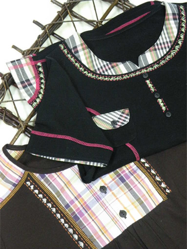 夏らしい清涼感のある多色チェックを切り替えに使った 綿100%強撚フライスのカットソーです | |
