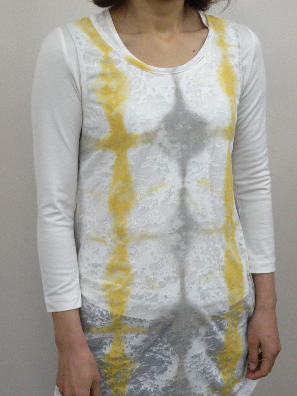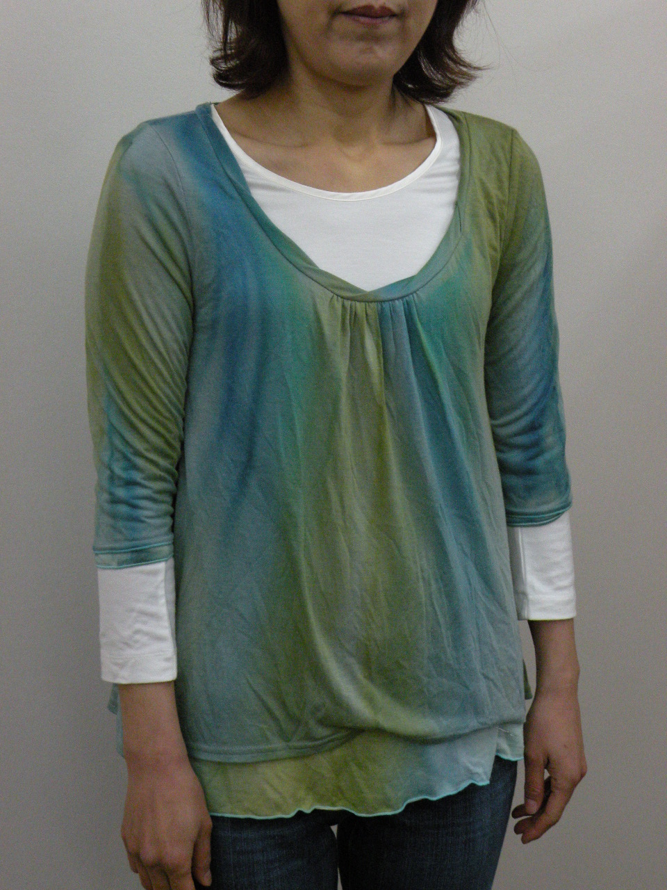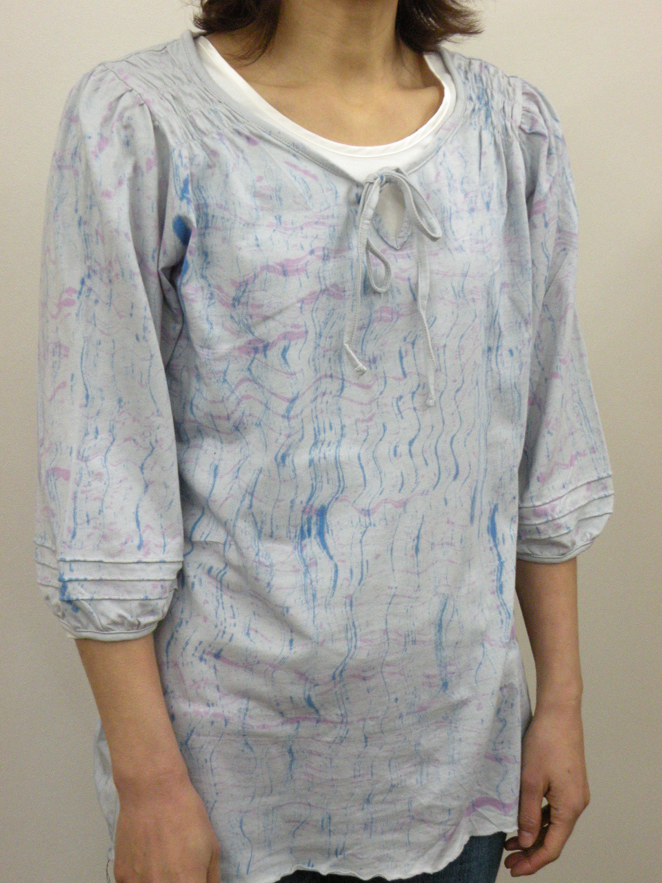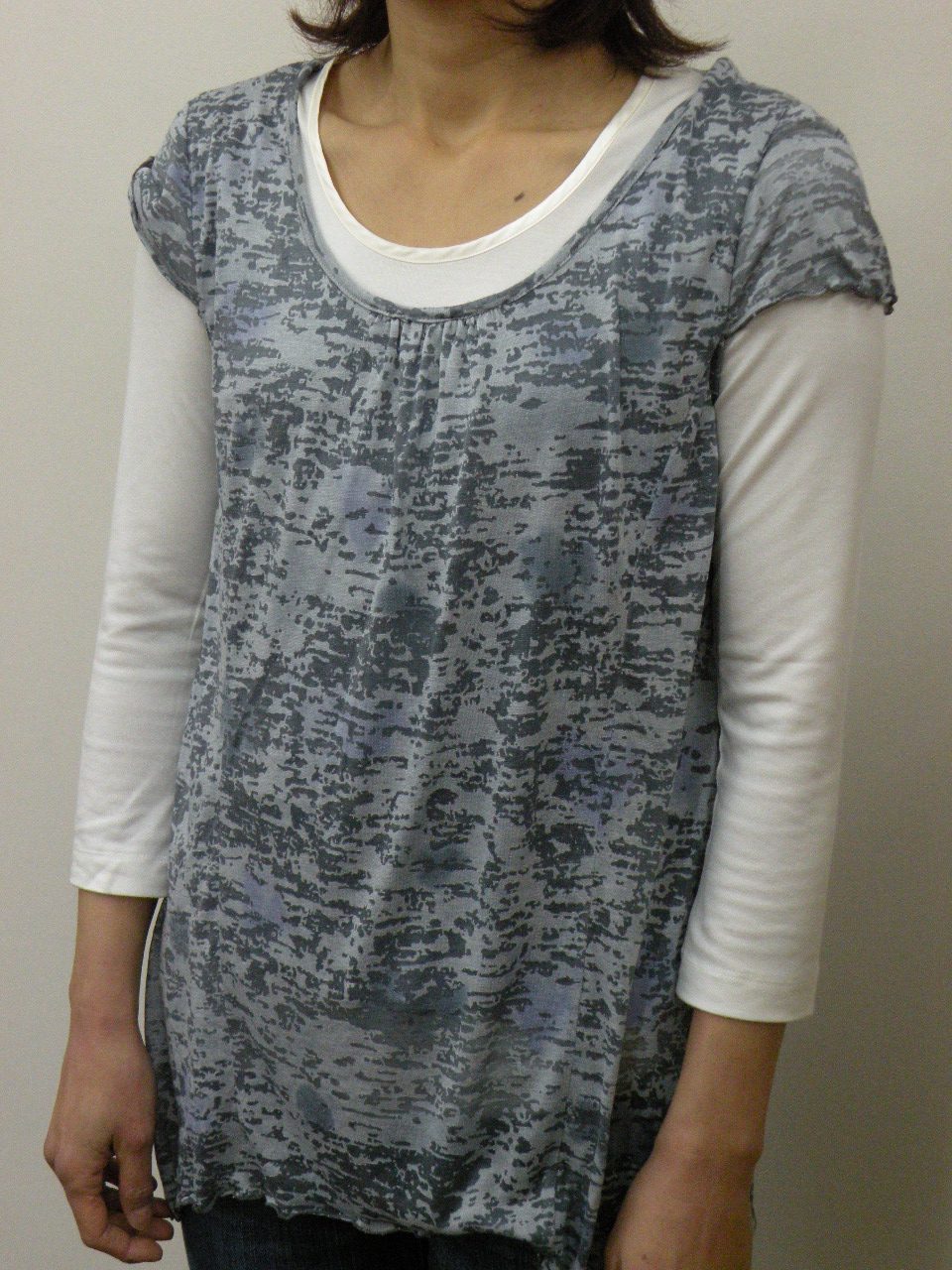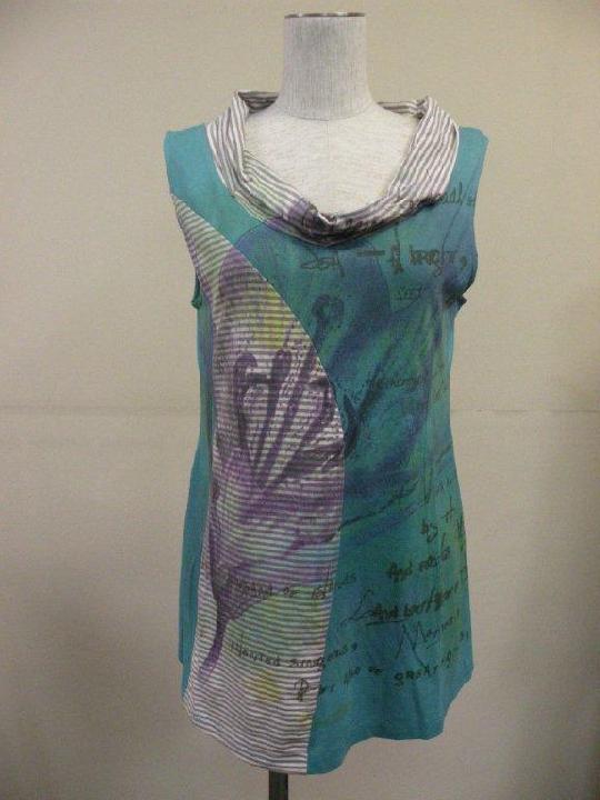 夏らしい清涼感のある多色チェックを切り替えに使った 綿100%強撚フライスのカットソーです | |