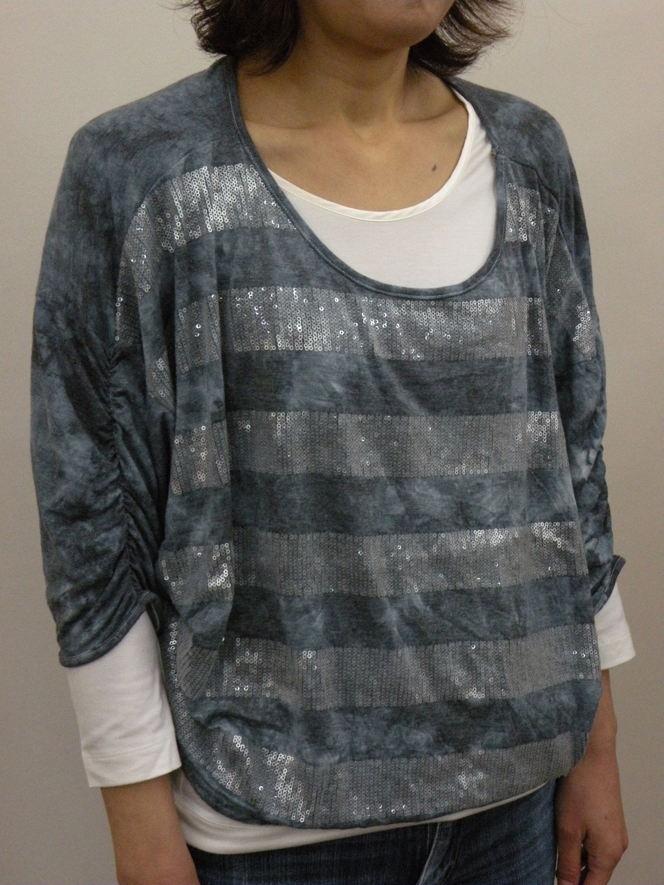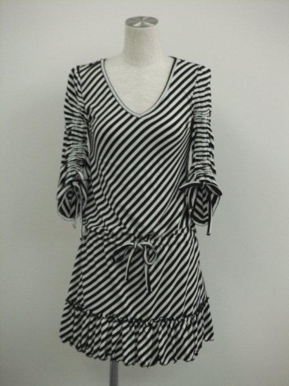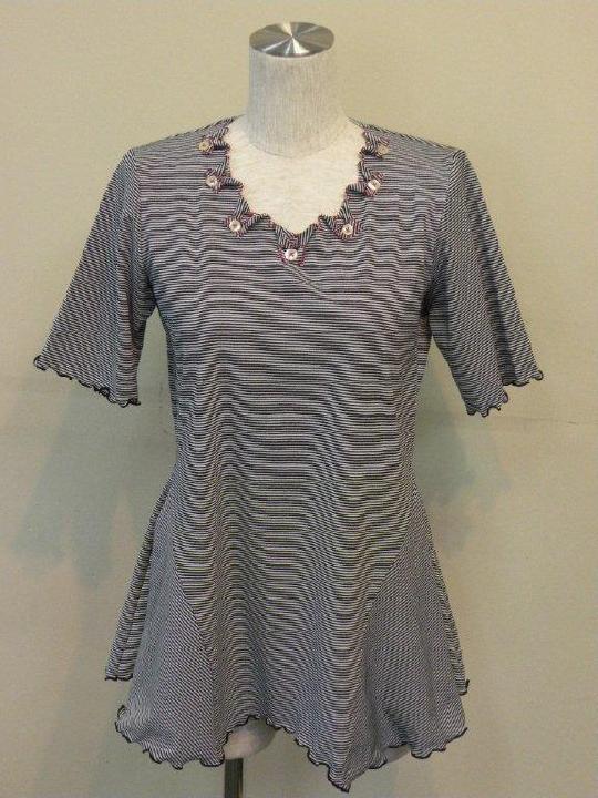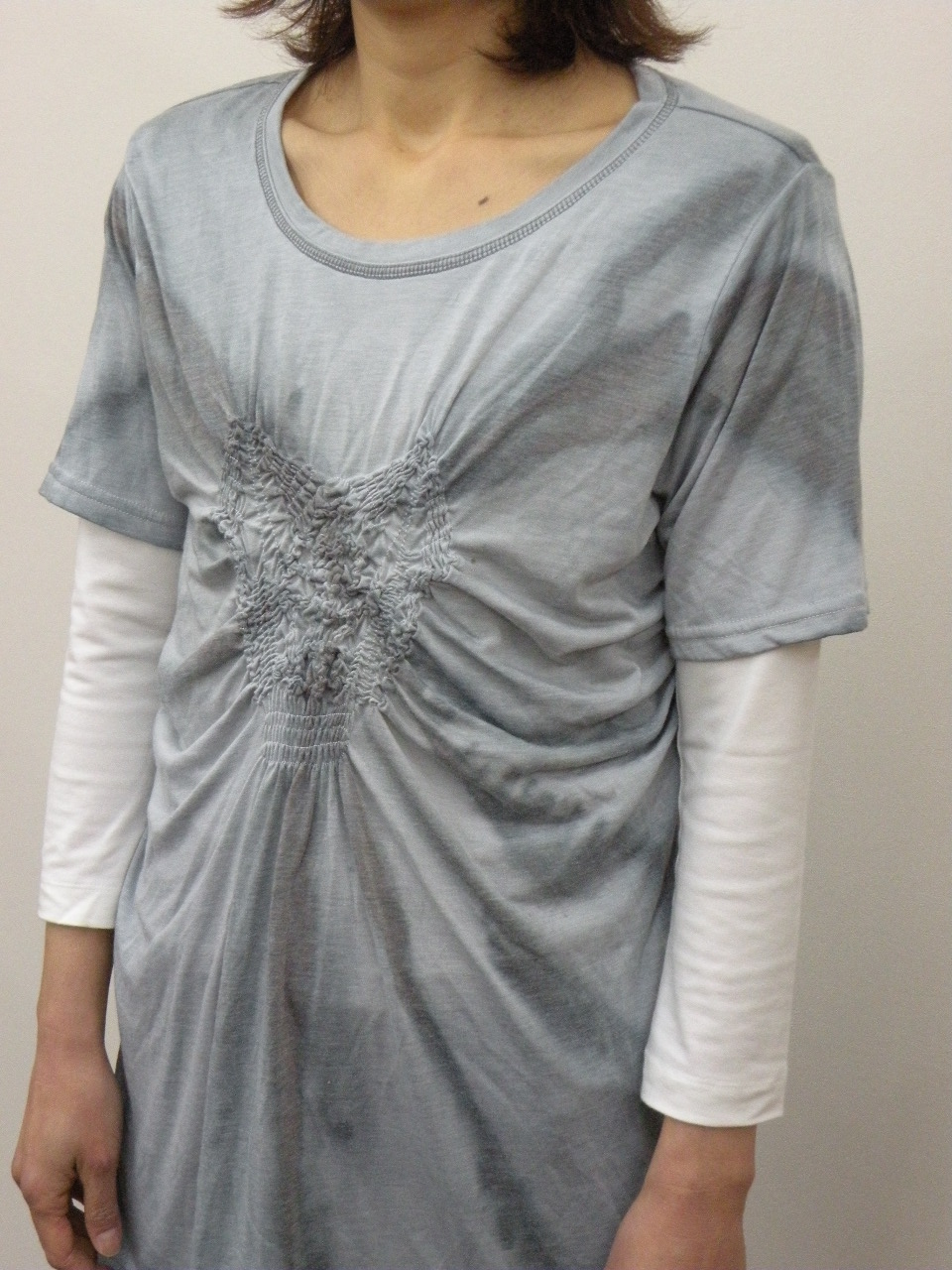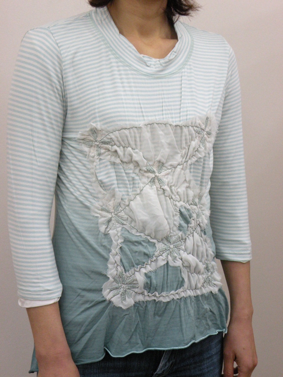 夏らしい清涼感のある多色チェックを切り替えに使った 綿100%強撚フライスのカットソーです | |