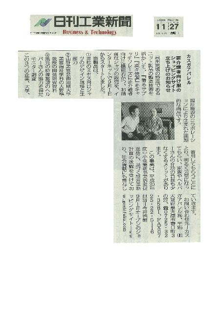 が11月27日日刊工業新聞に掲載されました。